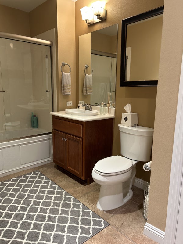 Room is furnished with queen bed, night stands, dresser, side by side closet, and a TV with Roku. Wifi is an extra $25.00. 1 parking space in garage. All utilities are including except wifi, you can order cable TV if you would like. Private bath with shower and tub.