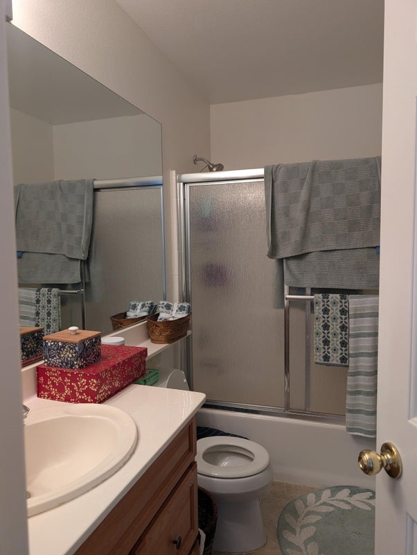 Short-Term Room for Rent with Private Bathroom We have a private bedroom and bathroom available for a female-only tenant. This short-term rental has a firm 6-month maximum lease and can be rented on a month-to-month basis within that timeframe. The room is pet-friendly (we're open to another dog after a successful meeting), and all utilities are included. You'll have access to our pool, common areas, and a laundry room. Our family is respectful, easygoing, and no-nonsense. We work from home and have a toddler and a dog, so you must be comfortable with a lively home environment. Our toddler is in school, and we work full-time in criminal justice and disability services.