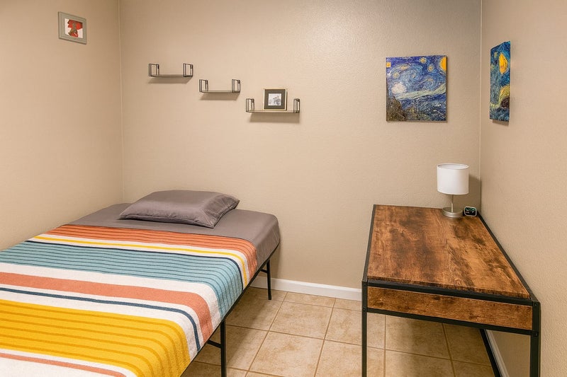 • Furnished bedroom (bed + desk available) • Quiet and private • Neutral décor • Access to all home amenities • Tile flooring (clean & low maintenance)