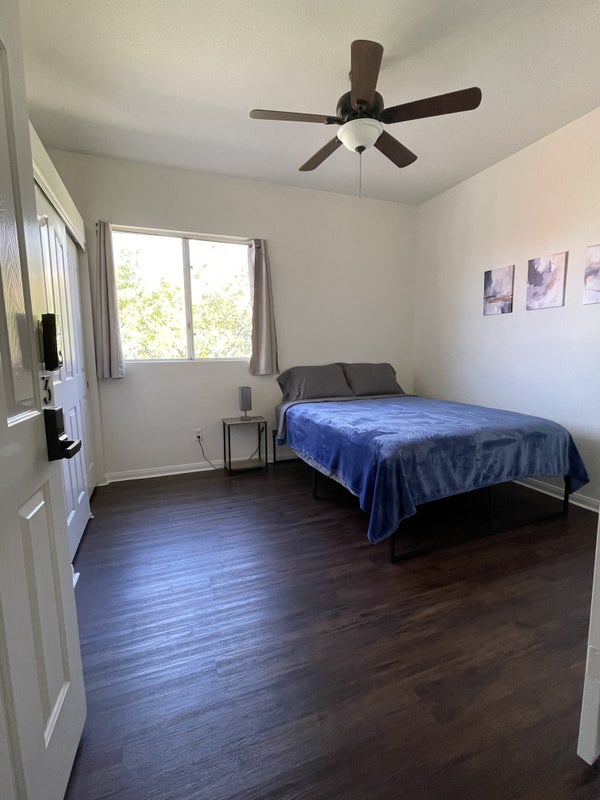 Convenient access to shopping, dining, and major freeways. Private bedroom Utilities included (electric, water, etc.) Washer & dryer Shared kitchen and living areas Quiet, clean environment Balcony New queen size bed Shared bathroom