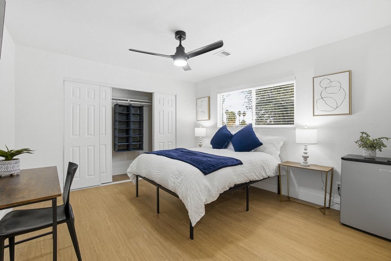 Private furnished room for rent. Move into a modern Townhouse today! Completelyrenovated and comfortable, this is the perfect place to call home. Enjoy fresh air with our large private yard and picnic table. The kitchen comes equipped with a fridge, sink, oven, stovetop, microwave as well as garbage disposal, making it the perfect spot to whip up a meal or two. Full Laundry room available to all residents at no additional cost. 2 enclosed and secure garage spaces are available (subject to availability) to members for an extra $ each per week (to be added to the posted room price) or there is ample extra parking on the street. The neighborhood is near grocery stores, restaurants, shopping centers and you won’t be far from all Las Vegas has to offer. $8 per week. Room rate includes all utilities, high speed WIFI, free laundry access, and Teladoc service. PROPERTY ID: 9