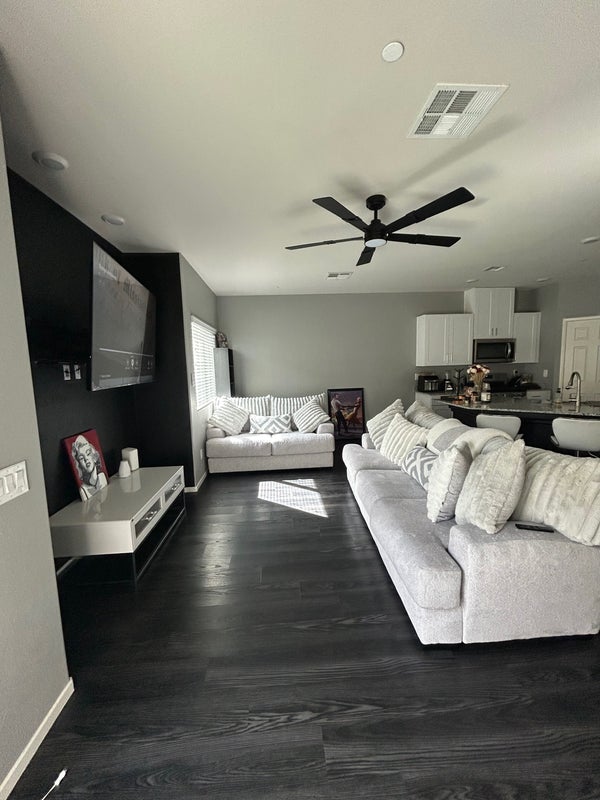 Lovely 2-story townhouse in gated community with pool, park, and walking trails. Has a private backyard with a 2-car driveway and garage with plenty of parking space within the community. First-floor open-concept great room with a ceiling fan, half bathroom, and a separate laundry room. The kitchen features a large island, granite countertops, white shaker-style cabinets, stainless steel appliances, and a walk-in pantry. Second floor has 3 bedrooms, no carpet except for stairs & closets. The master bedroom is located at the very end. Two guest bedrooms with a full guest bathroom, each room has window treatments and upgraded fans. Backyard has pavers and turf, within walking distance is Galaxy Park, Aliante resort, DMV, shopping centers, gyms, dining, schools, & easy access to the 215 freeway. Currently it’s just me (female 25) and my roommate (female 25). I live in the master bedroom and essentially rent out the 2 spare rooms to other women. Most of my time is consumed by work, so I'm rarely home.