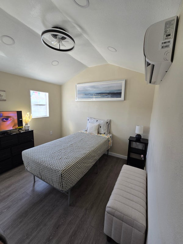 Welcome to your charming bedroom, bathroom tiny house in North Las Vegas! Built in , this cozy property features a fenced yard, security cameras, and is located near parks. Enjoy amenities like a refrigerator and microwave. Utilities are not included. Smoking allowed outside only. No pets allowed. Don't miss out on this amazing rental opportunity for $month!