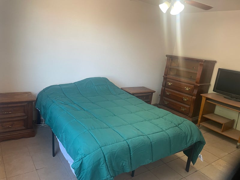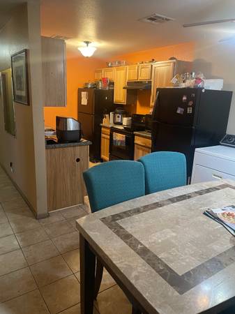Furnished bedroom available for rent in a condo to share near the strip, unlv, and the airport. Queen mattress and bedding, dresser, night stand, closet, it also Includes Wi-fi/internet, TV, keypad door lock, patio, furnished kitchen to share with oven, stove, grill, air fryer, instant pot, refrigerator, microwave, appliances, living room, there is also washer and dryer available in the unit for use. There is ample parking in this gated condo community that also has a swimming pool. Functional, Practical, Easy access to UNLV, Airport, Strip. this Room shares a bathroom. FYI it is currently a mixed household 2 male 1 female - the room does share a bathroom, must be ok with the arrangement etc. We seek a nice person, student or working professional, Fyi no drugs or major criminal background issue, and no pets. Landlady prefers unvaccinated tenants, (and/or at least no plans for more shots, etc.) Tenants must have an active cell phone for communication. Also, must have a bank account to connect to turbo tenant property management software we use to pay rent. $595/month plus 1/4 utilities (plan around $30-80/month depending) 1st &last for deposit to move in. Email/Text me to discuss. Thanks!!