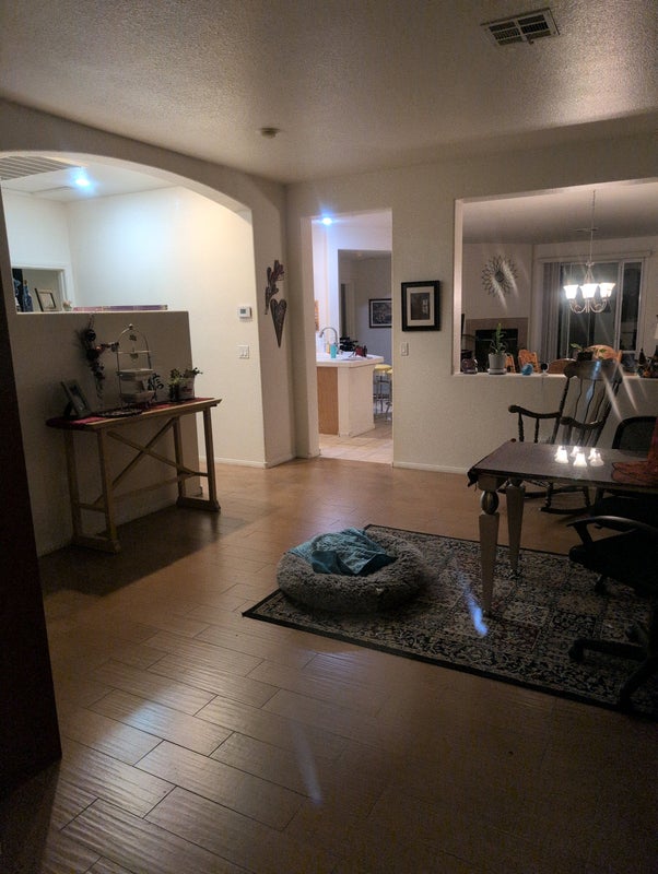 Room has custom closet shelving, blackout curtains, and new flooring. Kitchen and laundry privledges. I do have a small dog that needs care when I travel. There is a small backyard. No other roommates than me in this 4 bedroom house.