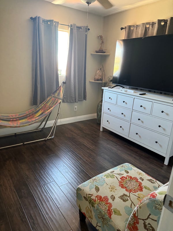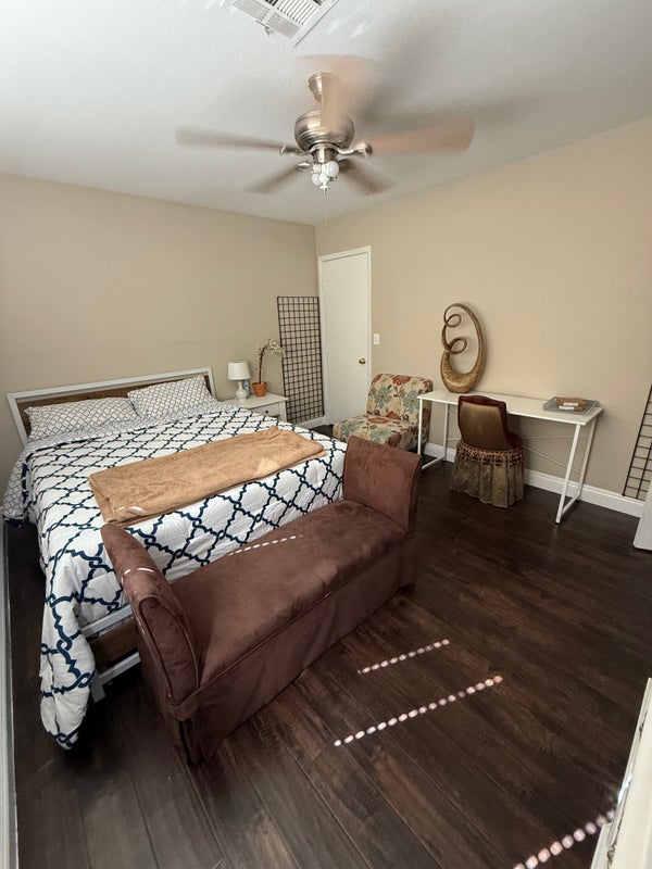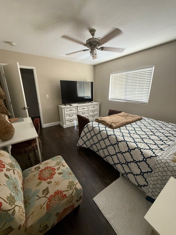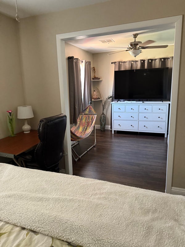 **Currently only the 2-room suite is available .I have two wonderful large rooms for rent. One room is a 2-room suite, the other is a 1 (large )room suite. Both are fully furnished, with queen beds, desk and chair, lamps, table, chest of drawers, and brand new 65" TV's with 1000's of channels, all live, all movie, all series, and all PPV, all included in your rent. Both rooms have walk-in closets as well. Fast wireless internet in the home, your own dedicated refrigerator, your own dedicated driveway parking space. Immaculate beautiful home, and front and back yards. The backyard even has a huge patio, covered patio, and outdoor kitchen. Run of the house and yards and kitchen. Fantastic location in the SW corridor near the I-215 and Buffalo exit, in a super safe, secure neighborhood, with pride of ownership everywhere. Female homeowner. Located close to all goods and services and both freeways. Call or text Eric Von for details.