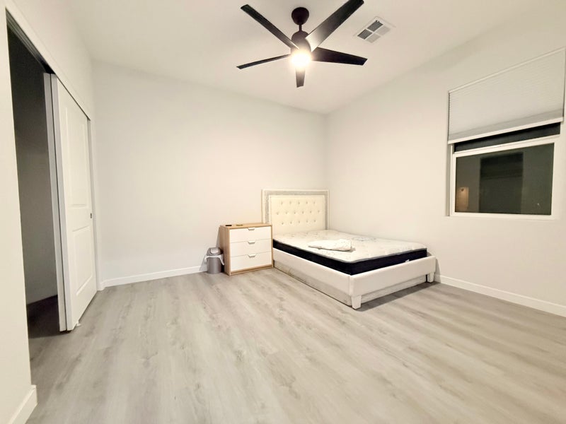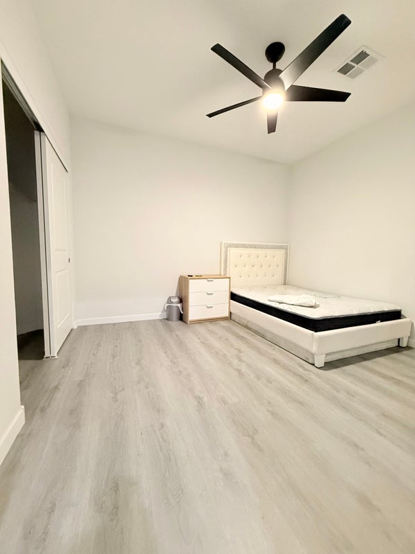 Hi, I’m renting a bedroom in a 2022 year built single story house, located on S. Rainbow and W. Russell (southwest). The bedroom is furnished with a full size bed and a desk, or if you can bring your own furnitures. You will be sharing the bathroom with clean and quite male.