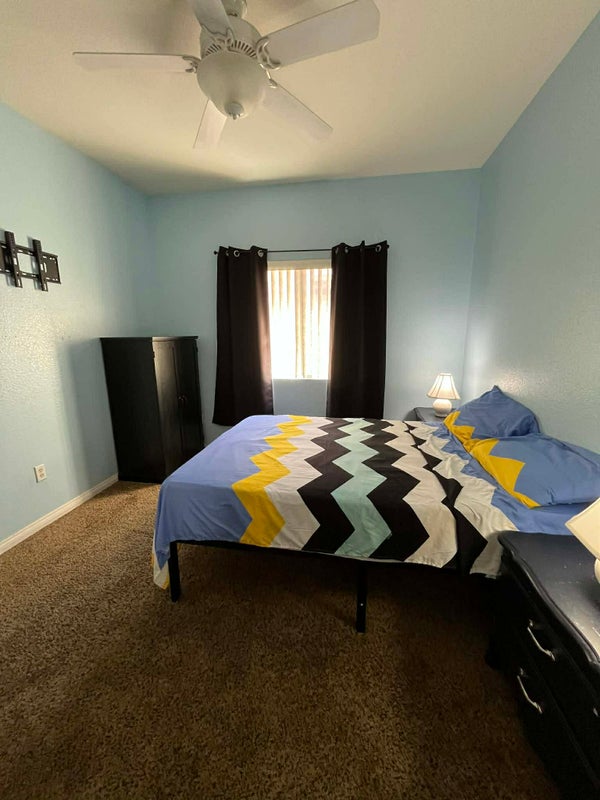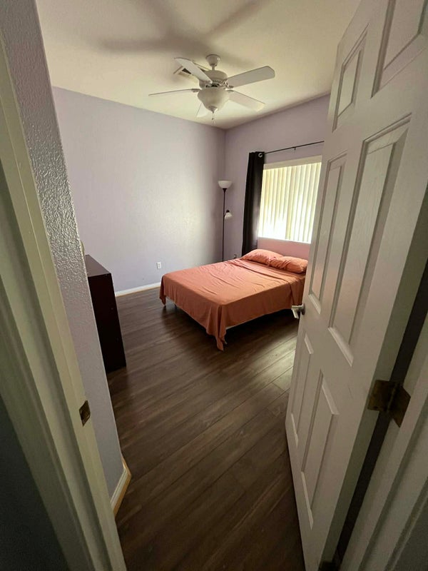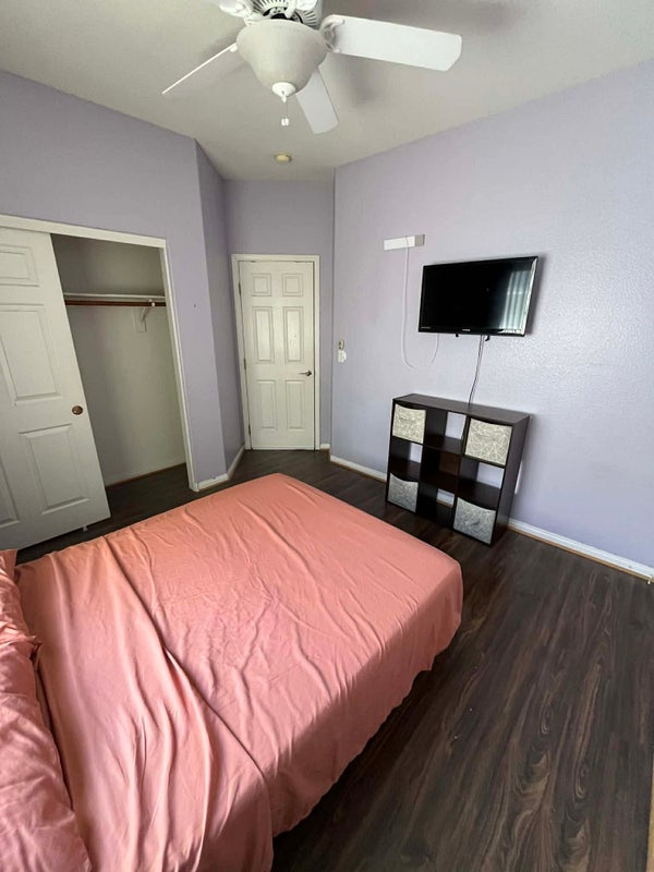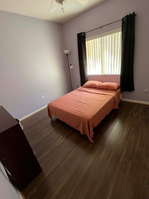 Furnished rooms (2) available on the 2nd floor of a 5-bedroom house located in a quiet, gated community on the southwest (Durango/Twain). Shared bathroom & laundry room also on 2nd floor. Rooms have full-size beds, closets/drawers, ceiling fan, black-out curtains, and TV ( no cable). High speed internet & utilities are included. Welcome use of common areas like: kitchen & the backyard. Parking available. Public transportation, fast food/restaurants, & shopping are conveniently close-by. Females non-smoking only! Must have full-time job. 1st month's rent plus 1 month deposit required. No pets, drugs, or drama! Text if interested.