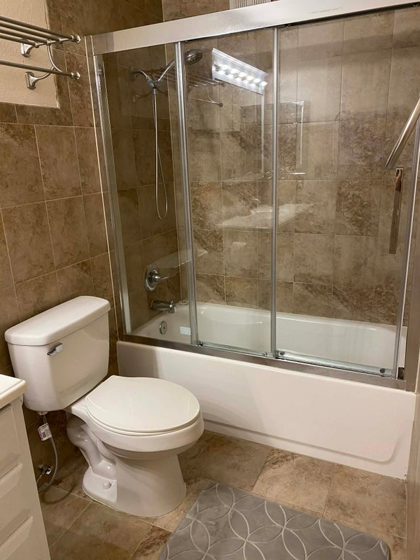 🛁 Full private bathroom with tub & glass shower