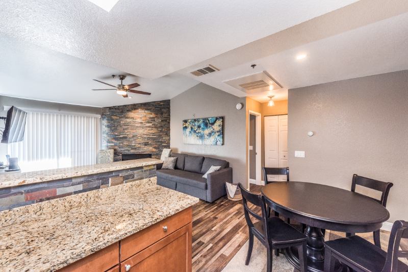 Fully furnished third floor one bedroom unit in a beautiful guard gated community in the heart of Las Vegas. Located right across the street from the Rio. Stainless steel kitchen appliances. Upgraded bathroom. Luxury vinyl plank flooring. Balcony with a view of the strip. Community has two pools and a gym. Water, trash, internet, and sewer included. Can come furnished or unfurnished.