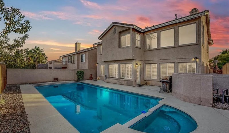 Step into a spacious master bedroom with private bathroom offering comfort, privacy, and abundant natural light. The home features an open kitchen with GE Café stainless steel appliances and an in-home washer and dryer. The highlight is the private backyard retreat, featuring a resort-style pool and soothing Jacuzzi for your exclusive use. Ideally located in a serene, beautifully maintained Summerlin neighborhood just minutes from premier parks, shopping, dining, and Downtown Summerlin. A standout opportunity in the heart of Summerlin!