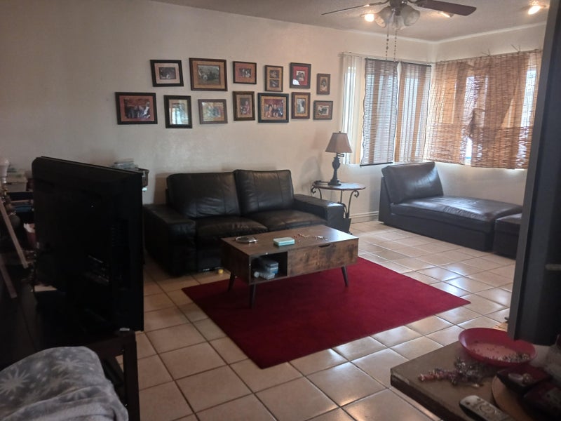 I'm 59 Hispanic widow, I'm low key, introvert somewhat eccentric easy going, I have 3 dogs foster dogs, I clean alot because my dogs both inside n outside.. I'm always busy.. I lived here since 2013 from California.. I've always had male roommates... much easier.. I have a male roommate he has lived here going on 2 yrs in his early 30s, works days but you will rarely see him n if u do it's for 5mins. Very nice, is a gamer, clean n very respectful.. u will share bathroom with him but again.. he rarely uses it, showers at the gym.. no traffic here, I can be nosey, were looking for someone that can be part of the household.. I can do payments on the deposit... u have access to just bout everything.. the room for rent has a large closet n queen bed.. its the larger of the 2. Oh no shoes in the house..