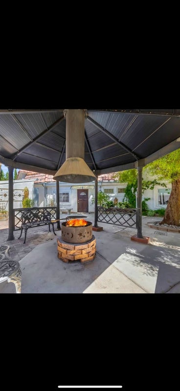 Beautiful. privately gated compound next to golf course. Property has a sauna building, koi fish pond, fire pit/bbq/smoker area with seating for up to 16, huge grassy and fully fenced back yard; ping pong/putting green/games, and many extras. Your suite would have its own private entrance, walk in closet with skylight, mini fridge, 65 inch flat screen, and fully furnished. All utilities, high speed internet, and security system included. Pets considered.