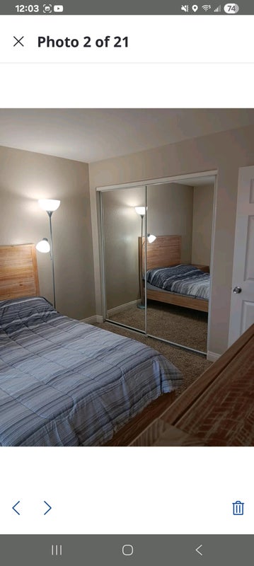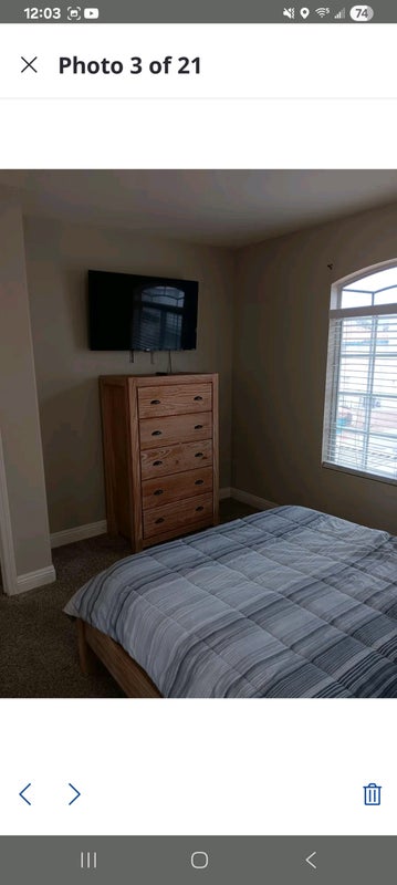 This spacious Bedroom is Fully furnished with a full size bed, 1 night stand and 1 big dresser and a smart TV. Bathroom has a tub and shower. You have full house access. House is in a gated community with a swimming pool and jacuzzi. There is a covered patio with a BBQ and lounge chairs for unwinding. Big living room with couch and 50" TV. Laundry room in the house. Beautiful kitchen and dining area. A must see