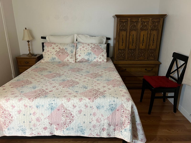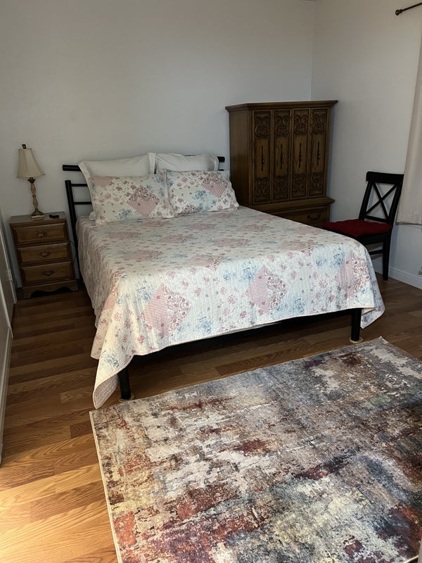 Fully furnished room for rent with private bathroom and walk in closet. Freshly painted, has a queen size bed, dresser, desk, night stand, fan with remote control, Tv, small new fridge and new microwave for convenience. Access to kitchen and laundry. Utilities and WIFI included. Complex is gated, with plenty of parking space available. Very walkable area, close to UNLV. The other roommate is a quiet, clean and respectful mature woman.