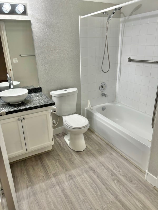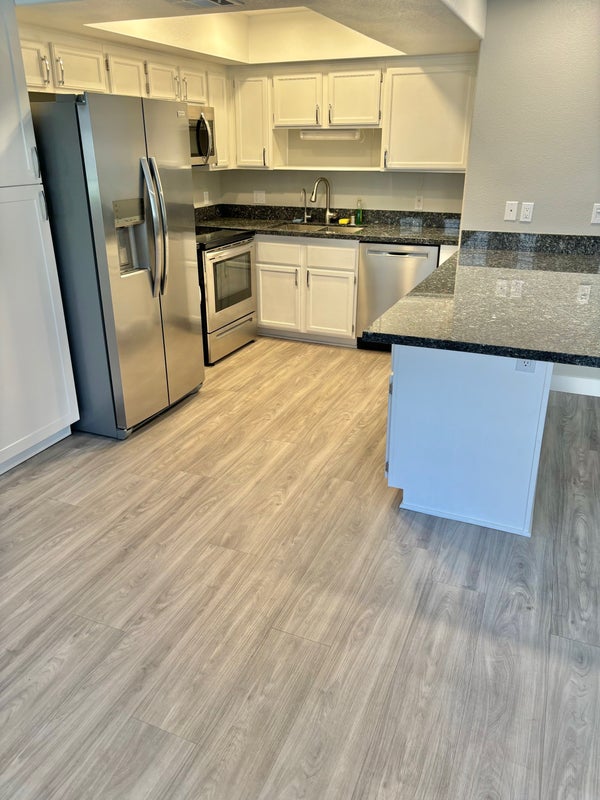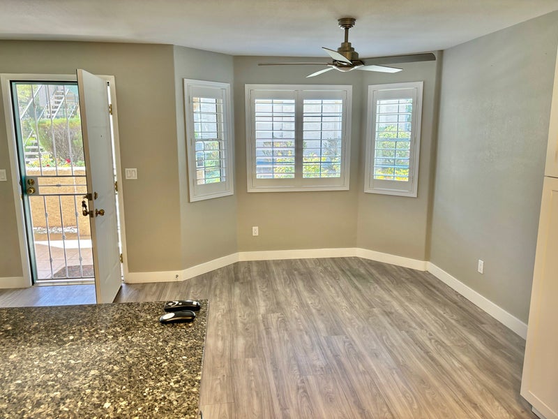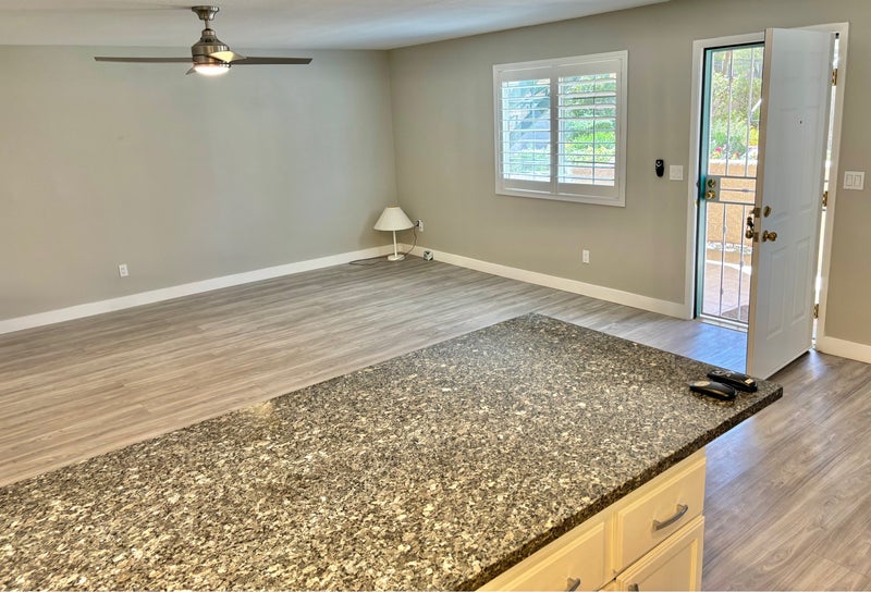 Bright, beautiful, first floor, 2 bedroom/2 bath, newly renovated end unit with patio available March 1 or after. Gated complex on quiet street in Spring Valley (on the edge of The Lakes and very close to Summerlin), walking distance to park, restaurants, shops, and grocery stores. 1148 sq ft with good size living room and bedrooms with large bedroom closets and large outside storage closet. Granite countertops in kitchen and bathrooms with modern vessel sinks, and long granite island in the kitchen – great for entertaining or cooking. Laundry machines inside unit, nice community pool and Jacuzzi, and assigned parking space under carport. Non-smoking professionals please. A dog under 20 lbs will be considered.