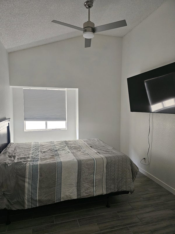 Large furnished room with 65" TV for rent in my single-story home with a shared bathroom. Pool in backyard. Quiet neighborhood. No Drama. No Pets. No Drugs. Smoking outside only. Street parking. Full access to the kitchen, laundry and pool. All utilities included and WiFi. Close to buses, shopping, etc in a convenient location. About 10 minutes from the strip. Please be CLEAN, RESPECTFULand RESPONSIBLE. *Must show proof of employment* Text or call if you have any questions or to make an appointment to see the property.