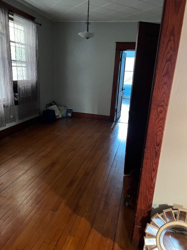 Cozy onebedroom with an extra room that can be an office off the kitchen on st floor in historic Colonial house with shared front enclosed porch and use of fenced backyard for grilling or relaxing. The apartment has a separate dining room and living room space and kitchen with updated appliances including gas oven. The bedroom has a walkin closet.