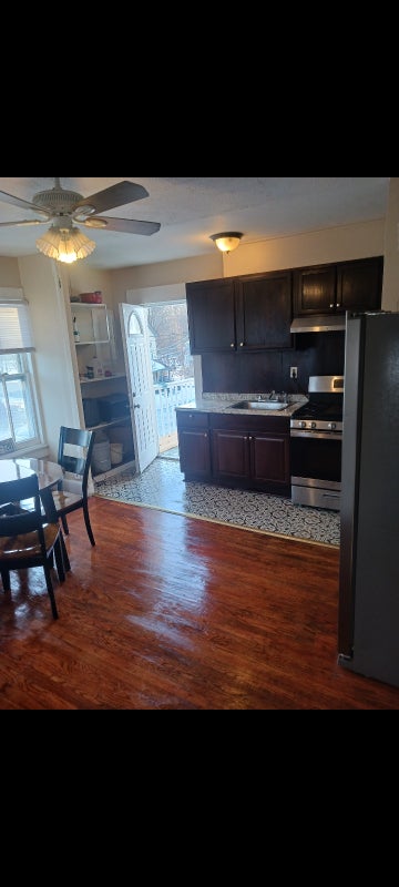 This is a 3 bdrm apt. Two bdrms 3rd fl and living rm. Rm or rent is on 2nd fl. With private porch. Kitcgen and bath are on 2nd fl Unit has 3 entrances which insurses privacy. Located near Vassar College.