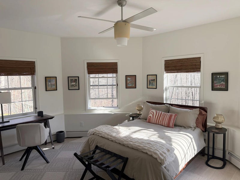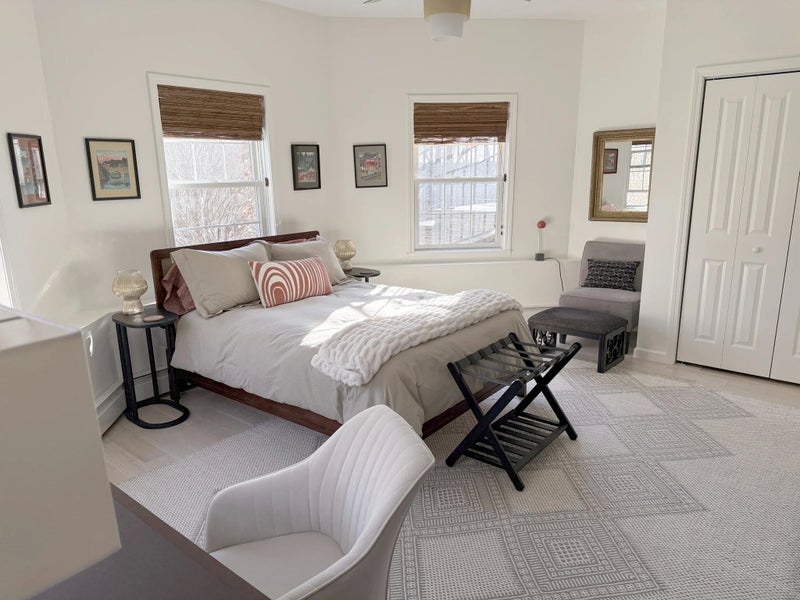 The Deer Room has views of perennial gardens, deep woods and an abundance of wildlife (deer, fox, turkeys, owls, chickadees and many more!) It is on the first floor of our home facing the front of our property.