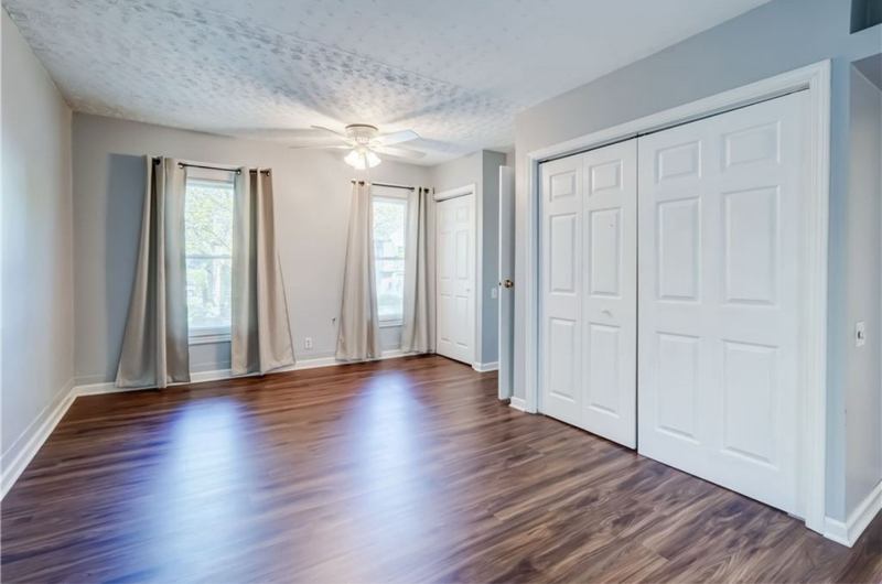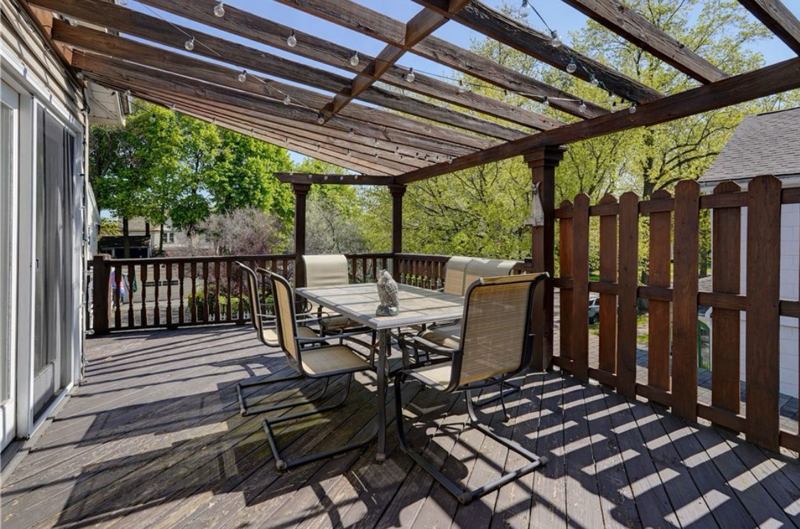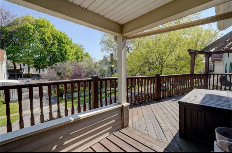 Walking distance to restaurants, shops and entertainment Large private deck AND front porch Updated kitchen, appliances and bathroom large closets AND additional walk in closet Vaulted ceilings in living room and bathroom Grand staircase and entry Basement laundry and storage Small garage space and off street parking for one car