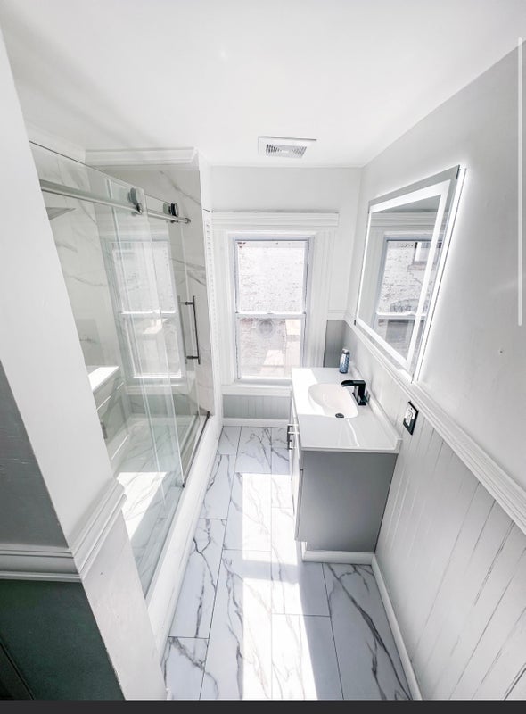 Stainless steel appliances Quartz countertops Marble look vinyl flooring Soft closed cabinets Front and back bathroom mirrors Porcelain tile shower surround Sliding walk-in glass showers Brand, new vanities, toilets, and contemporary dual rainfall showers Hardwood flooring Brand new flooring in each of the 6 bedrooms currently available for rent (rooms A, B, C, D, E, and F) and so much more!