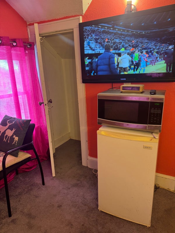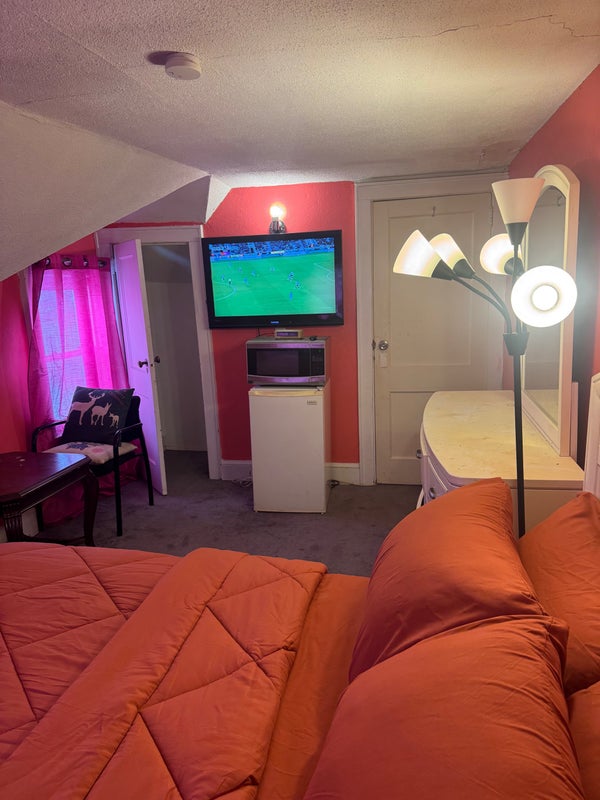 Private room upstairs with a lock on door, fully furnished with bed, Tv and Internet, Refrigerator and Microwave in room, Water Dispenser in the hall way and pressing board with shared bathroom with a male in his private room upstairs. Mall, Restaurants, Gas Station, Laundromat, Bank, Bus Stop, all within 3 minutes walk and 7 minutes drive to LIRR.