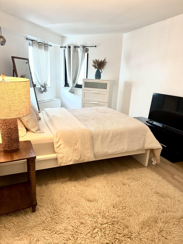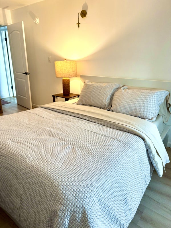 Space A comfortable , light-filled bedroom with a queen sized bed, a fully equipped kitchen for quiet nights in, and high-speed Wi-Fi for remote workers.