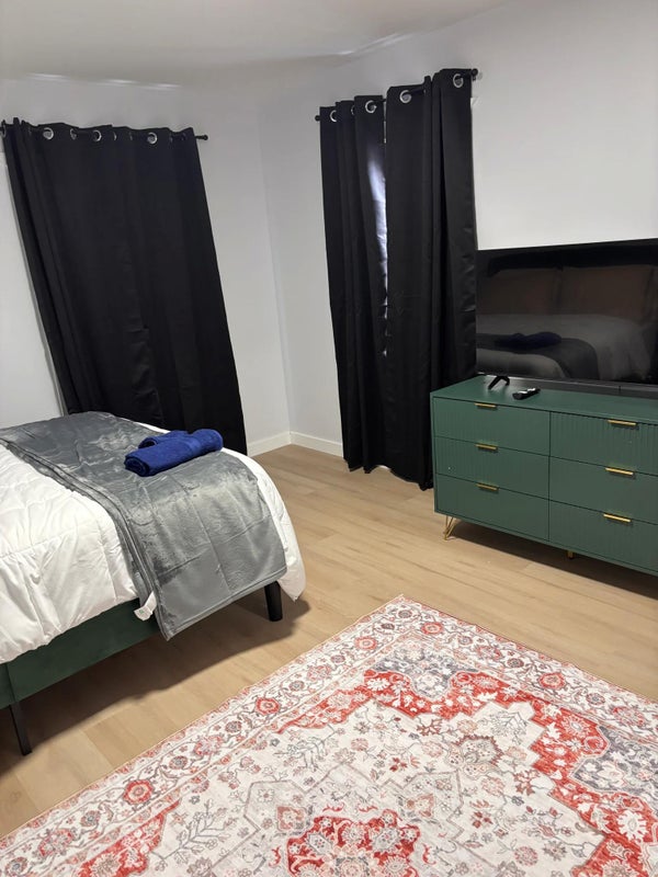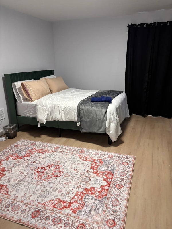 Private furnished queen bedroom with an ensuite bathroom in a newly renovated bedroom home. Guests share kitchen, laundry, and living spaces with other professionals. Ideal for travel nurses and professionals staying + days. Located minutes from Syracuse hospitals and downtown, with easy highway access. Free parking, WiFi, TV, and workspace included.