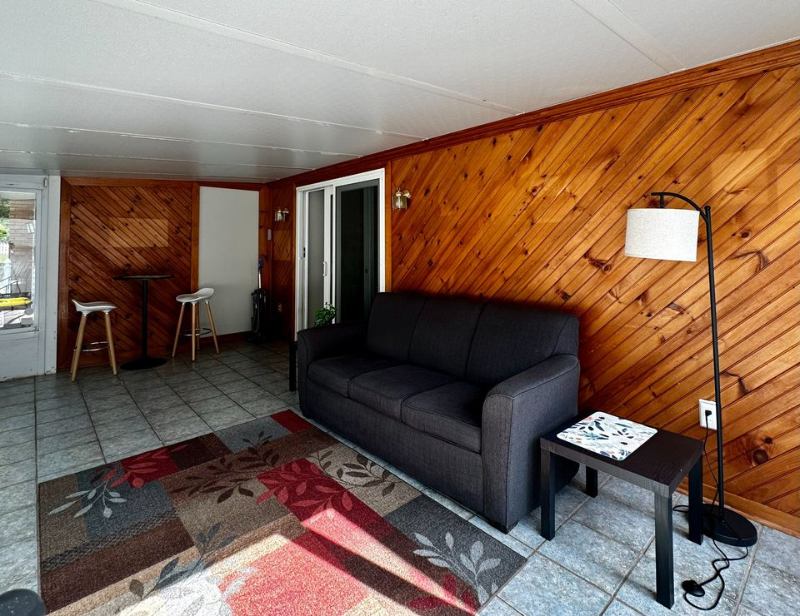 Safe Keyless entry doors, fully stocked fully furnished kitchen, living room and sun room included.