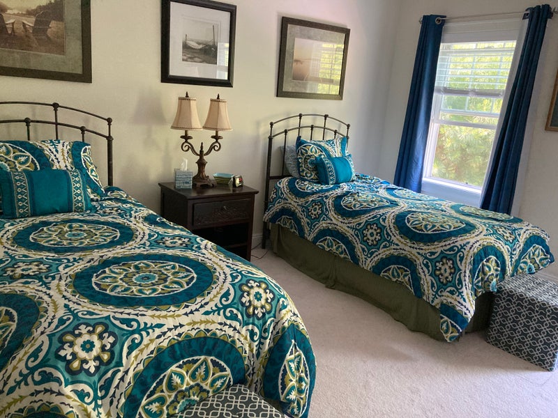 In 3- bedroom townhouse condo with pool and basketball court. 2.5 miles to beach. Own bathroom and loft with couch and chairs. Fully stocked kitchen and monthly maid service. All linens provided and W/D in basement.