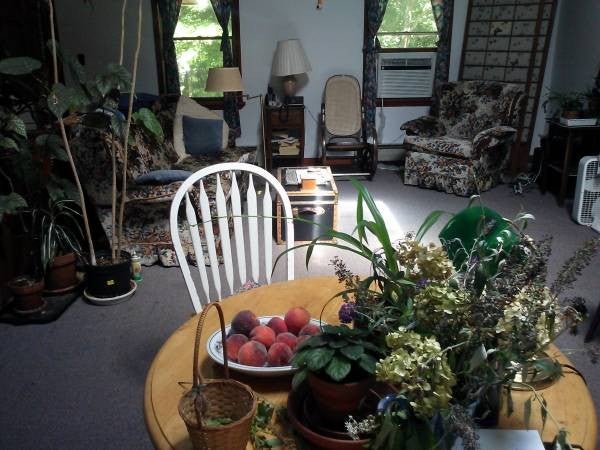 Cozy house, peaceful location, loft bedroom with window and skylight, overlooks garden. Ladder access. Share K, LR/DR, bathroom with owner and kitty. One mile from village of High Falls, minutes (by car) to Stone Ridge and Rosendale, 15-20 minutes to New Paltz or Kingston. Please be environmentally conscious/recycling/plant and cat-friendly. No smokers. $500/month plus share of utilities (electricity/hot water/W/D etc). Note: there are two BRs, a kitchen, dining alcove & living room.