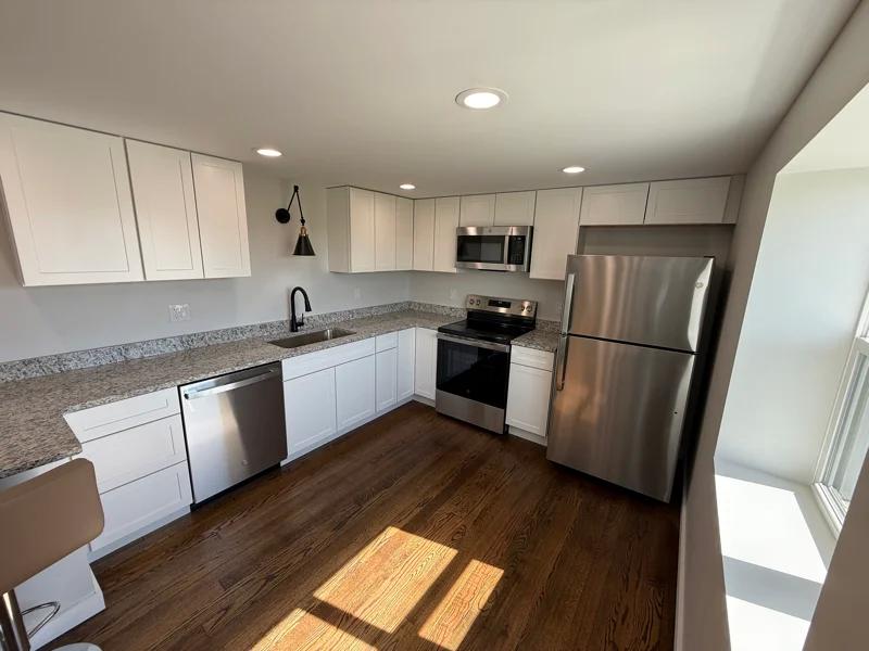 This property is a single family home, one bed, one bath, new board and batten style siding on the exterior, an oversized two car garage with home entry, garage has EV charging capabilities, completely remodeled and rebuilt home, new spray foam insulation allowing for max heating and cooling savings, the property has one bedroom with a spacious closet, one luxury bathroom with in unit laundry, new front load washer and dryer included, beautifully refinished hardwood flooring, partial basement space for storage, kitchen has all new custom cabinets with granite countertops, stainless steel appliances, dishwasher included, pininsula with barstool seating. Spacious private yard in front and rear.
