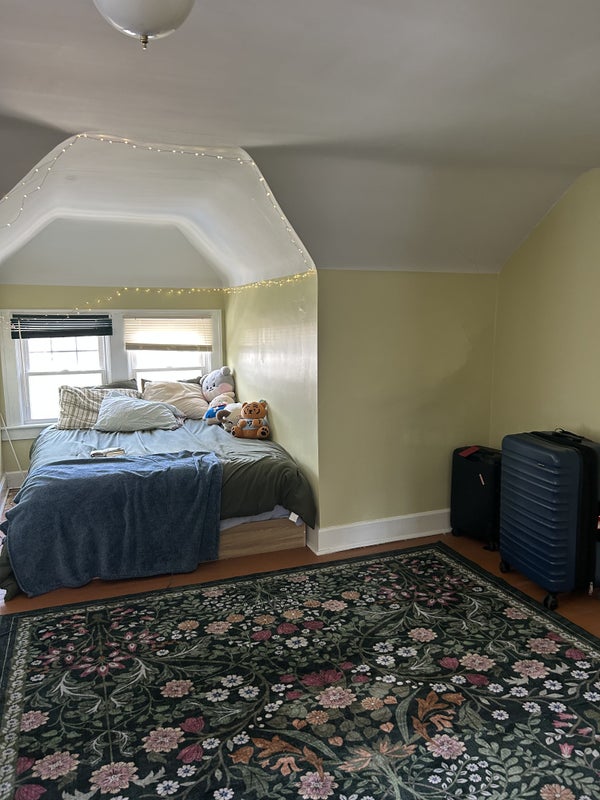 I am looking for someone to take over my lease in a large house (duplex) in Cleveland Heights. Base rent $1100 (includes water and trash). WiFi $40/month (negotiable), Electric split 50/50 avg $21.50 per month per person (in the winter), gas split 50/50 avg $160 per month per person (in the winter). The lease is from whenever you move in until March 2027. It is a fully furnished attic space with a bed, closets, entire second room for storage/crafting/walk-in closet - whatever you'd like! It also has a half bath. There is a shared bathroom on the second floor with a shower, as well as an office space and guest bedroom. Laundry is in the basement. Your roommate would be a 27 yr old female who works from home and is friendly but also respects privacy. She also has a very friendly dog who would be your "third" roommate. The dog is well behaved and a wonderful energy in the house. Other pets are welcome as long as an introduction between animals is done beforehand! Photos of the room and home are attached. Please message me if interested!
