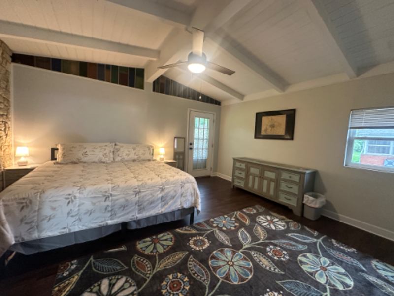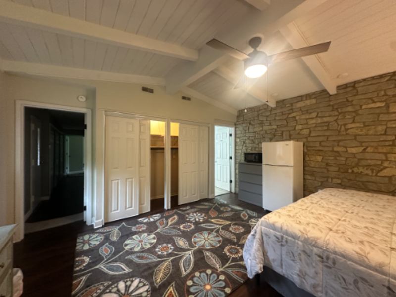 Primary Suite with Private Bathroom (Just Remodeled!!) Exclusive Refrigerator, Microwave & Coffee Maker. Situated in shared house available for mid term lease. Fully Furnished, Unit G x. Private Entrance & Covered Patio. additional common full bathrooms. Fully Furnished with on Site Laundry. Access to all Appliances, Common Areas and Off Street parking. Owners are local, but not on site. Utilities Included.