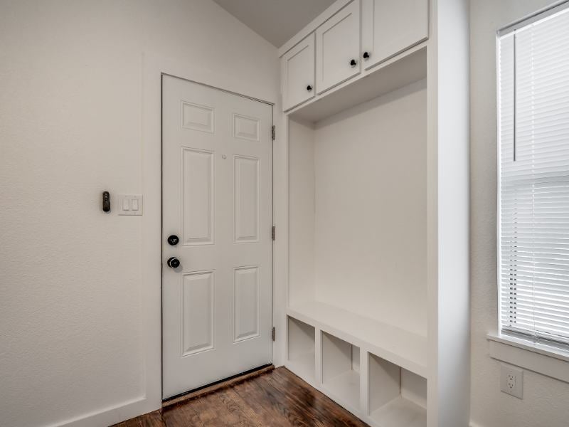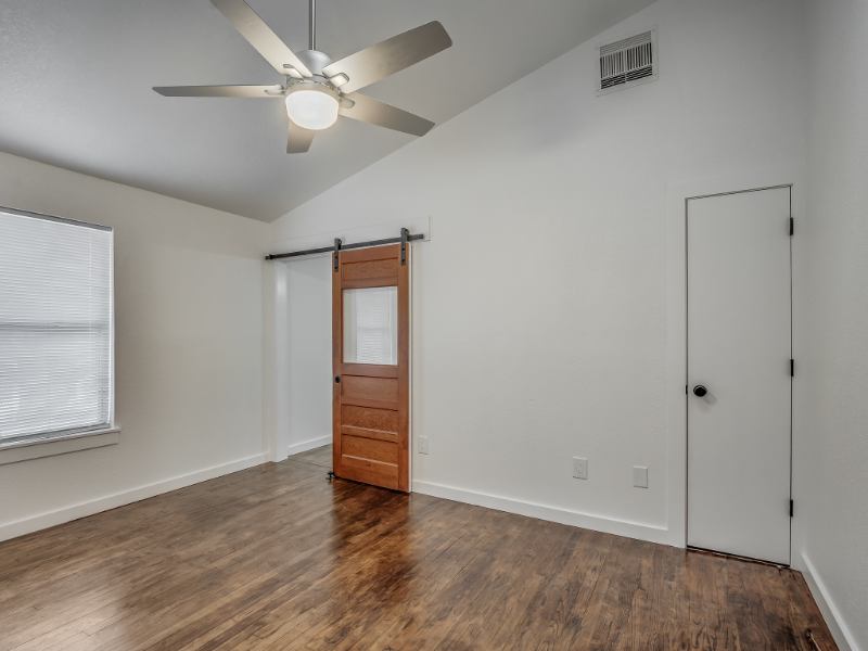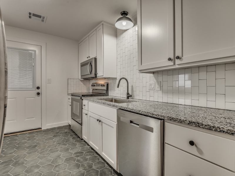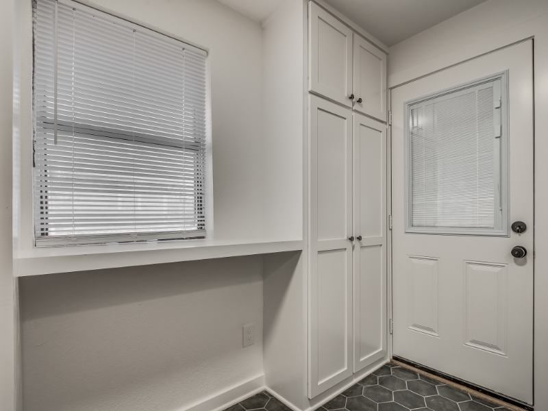 **AVAILABLE FOR JUNE MOVE IN** Luxurious and efficient one bed, one bath apartment overlooking Andrews Park and just a short walk to downtown! The entire unit has been renovated from top to bottom with thoughtful design and elegant finishes. Vaulted ceilings welcome you into the unit with plenty of natural light. Refinished hardwood floors can be found throughout the living room and bedroom. Custom mudroom bench tucked behind the door provides tons of storage space. A refinished barn door leads to the bedroom. The kitchen features gorgeous custom cabinets that provide tons of storage with stainless steel appliances, granite countertops, and subway tile backsplash. The bathroom has a extra deep tub, new tub surround and vanity, and a stacked washer and dryer set. The back patio is the perfect spot to unwind in the evening, while the front porch overlooks the recently improved Andrews Park with splash pad, playground, and skate park. OwnerBroker