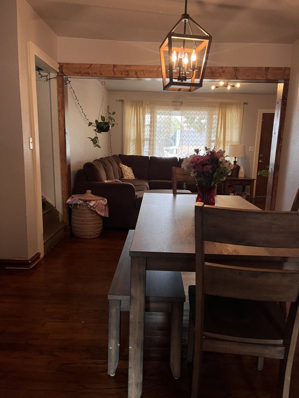 I have two bedrooms and two living spaces in the home, the front living room and bedroom will be for the new roommmate and the back den and bedroom will be for me. The photographed bedroom and living room are for rent. The bedroom will be UNFURNISHED and the living room can have the furniture taken out or left depending on what you’d like.