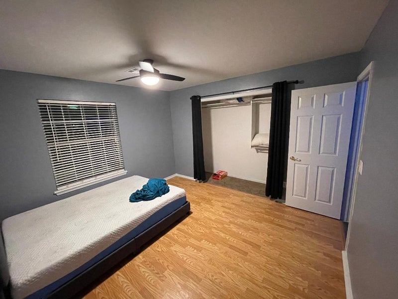 Bedroom in a house for rent. Includes a private bathroom and a covered garage parking spot. Access to the kitchen, washer, dryer, and living room. Rent includes all bills (including wi-fi). Bedroom is 12ft x 11ft (not including the closet). My previous tenant had a king size bed with some extra space in the room.