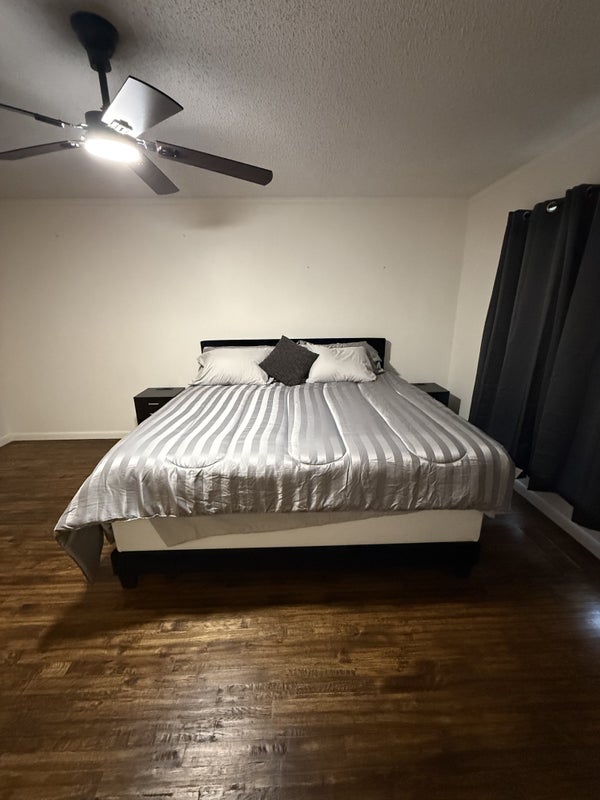 What you get: • $975/month – ALL BILLS PAID (utilities included) • WiFi included • Private bathroom with a soaking tub + walk-in shower 🛁🚿 • Huge walk-in closet (tons of storage!) • Furnished room with a comfy king size bed setup • Ceiling fan + blackout curtains for the best sleep 😴 • Shared kitchen/living areas in a clean, quiet home
