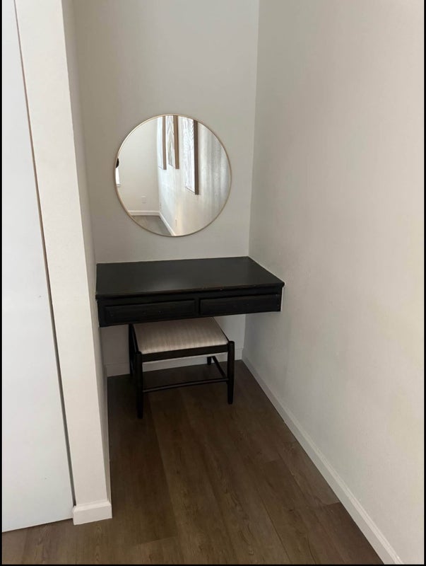 About the Room: • Fully furnished with bed, mattress, nightstands, and stylish décor • Spacious layout with large window for natural light • Cozy, neutral design that feels calm and elevated • Dedicated vanitydesk area with mirror (perfect for getting ready or working)