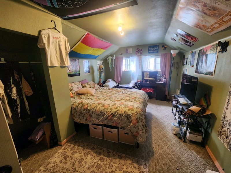 The home is spacious and well-maintained, with a shared kitchen, warm living room, fast Wi-Fi, in-house laundry and a large backyard that’s great for relaxing, getting fresh air or keeping our chickens company. We also have a driveway and street parking, with four spots total. Located less than a 5 minute drive from grocery stores, fast food, cafés, and public transit. Easy, comfortable living with respectful roommates and 2 large dogs.