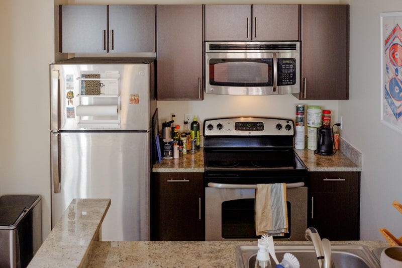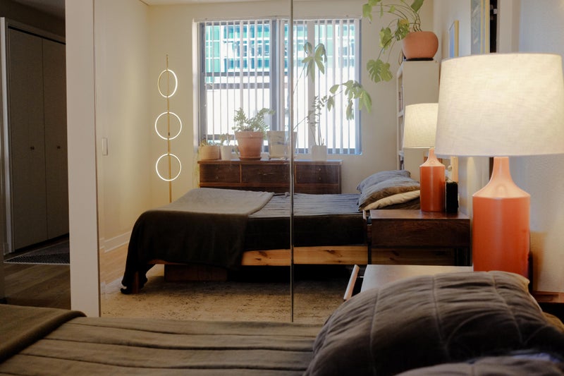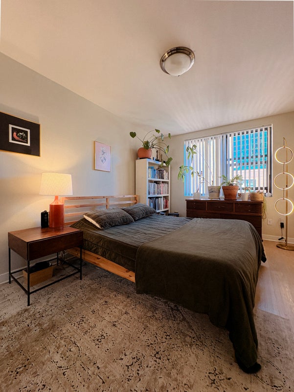 The apartment: - Top floor, 1 bed / 1 bath - 647 sq ft - SW Downtown Portland - Hardwood floors, private patio, hotel views - In-unit W/D, A/C, stainless appliances, keyless entry - Floor level has: Small gym, sauna, jacuzzi