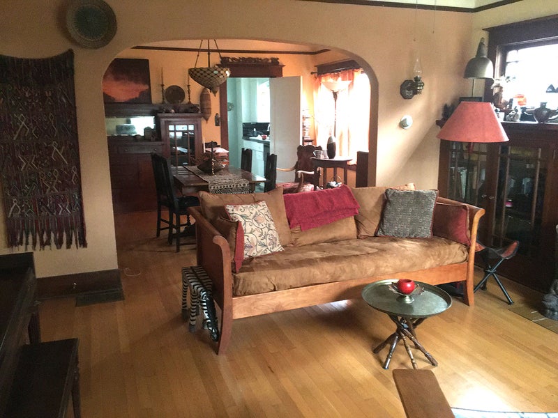 Location location location! My home is nested near three of the hottest out-and-about areas in old Portland--Mississippi, Alberta St. and Williams St Corridor. Hip restaurants and taverns are within walking distance, as is the library, the lovely 1920s Peninsula Park, bus and light rail; the I-5 freeway is only about 10 blocks away. Your 11' x 14' room is fully furnished with a double bed, dresser, closet, night stand and desk on the sunny side of the house. It is private, quiet and tasteful. Built in 1923, the house is furnished with antiques and ethnic pieces, but with ROKU and WIFI ;) I feel fortunate to have one terrific tenant —a 62 yr old teacher who is helpful, optimistic, fun, responsible, outgoing and clean— and I'm hoping to find one more. Feel free to text or phone for more information. I hope to hear from you. Karen