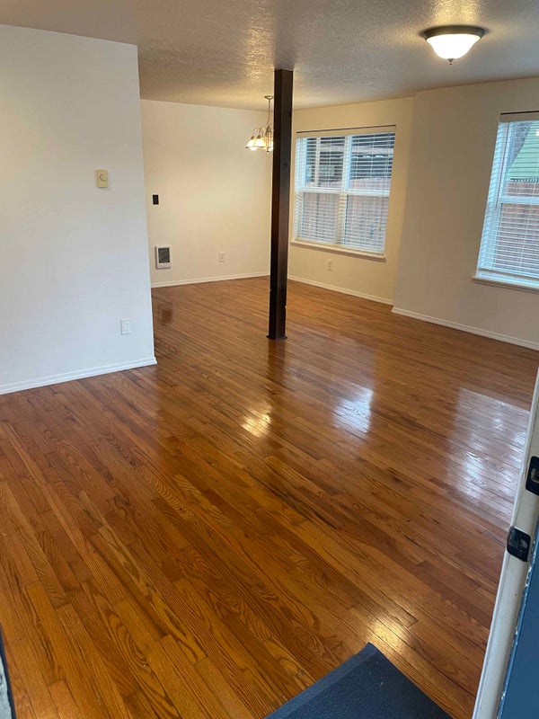 200 sqft bedroom available + common area in 1548 sq ft half of a duplex Move in date would be May 1st Bedroom info: -south facing window, central heating, ample closet space, generally spacious and can fit a king size mattress. ac unit not included but recommended for summer months. Would be sharing a bathroom with one other tenant whose room is upstairs. Shared space info: -Spacious first floor area, about 1000sqft of shared space, full kitchen with all appliances, in unit laundry in side hallway, cozy dining table area and spacious living room area. -Extra storage and closets in shared area on the first floor as well. -Cozy backyard with grass plot and covered porch area. Perfect for late spring and summer lounging and hang outs. Cost and Utilities: -Total rent would be $3150 a month, split evenly between the 3 tenants, you would be responsible for $1050 a month -We would be looking for a 1 year lease commitment. You would also be paying a third of the security deposit. -Utilities: We are responsible for Water and Power bills and split those costs evenly (divide everything by 3). Water is paid every 3 months. -Wifi will also be split in 3. An old tenant was managing the wifi so we can discuss which ISP we prefer and want to switch to once you move in. Other Considerations: -The shared area will be mostly furnished but there will be some storage space in shared closets and we can always discuss what furniture and other things we can accommodate/swap out in shared areas. -Pet free household due to allergy reasons -Smoking is allowed in the back area outside but is forbidden indoors and on the front porch on our lease. -Landlord is friendly and responsive -Located just off 15th and Alberta, a very chill and fun neighborhood with tons of amenities About the other 2 tenants: -We are coworkers working for a local non-profit. One of us has lived in this house for the last 2 years with two old tenants who are now moving out. -We both have hybrid schedules but spend most working days in office with a few days working from home -We are two cis men (he/him) in our late 20s and early 30s. -We are fairly social and have guests over but are not loud or big partiers. -We value a calm, safe, clean, and relaxing living environment and open and direct communication as roommates. -We would like to meet any prospective tenants before committing to a new roommate.