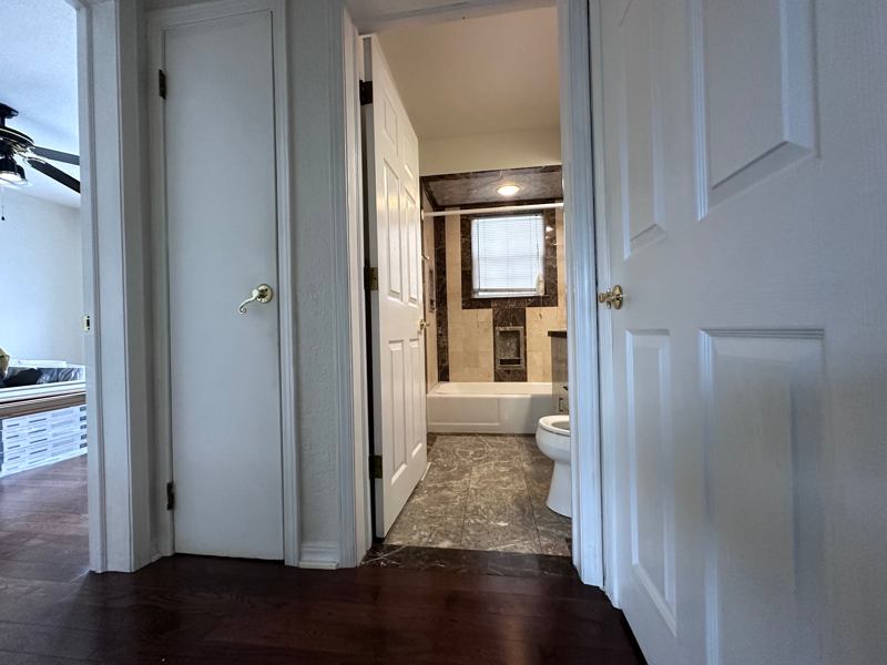 Spacious private room with private bathroom on the main floor of a large bedroom bath house. The room has adjacent access to living room and kitchen. This is the only room on the main floor, however, it is not a separate apartment. The house has a nice gazebo just outside the room, and a huge backyard.