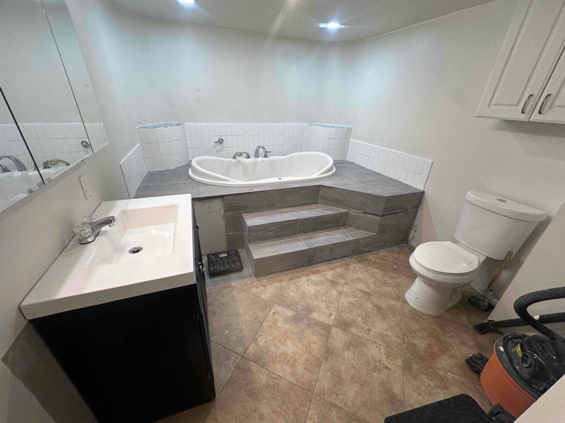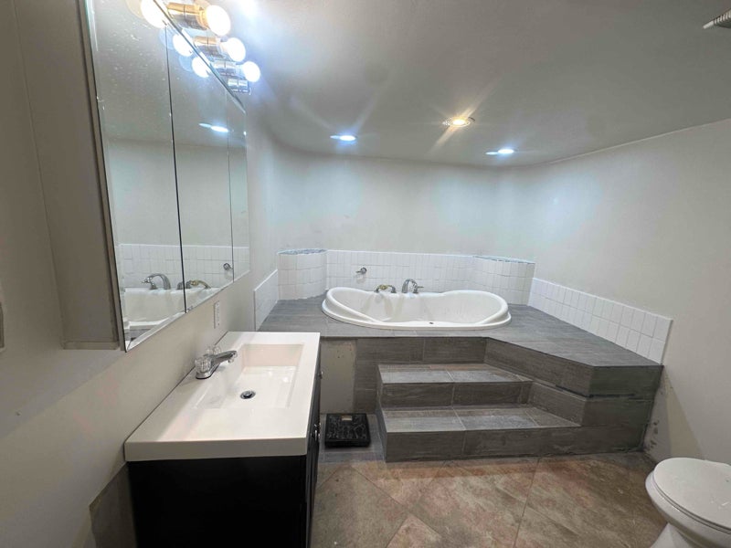 This basement suite has one spacious bedroom and one spacious private bathroom with a soaking tub. In addition, the suite comes with its own kitchen. It is part of the big house (bedrooms bathrooms). Entry to the suite is through the staircase down from the main kitchen. Small part of the basement suite is shared space (with other tenants) in the basement which is the laundry room and its associated pathway to it. The house has a large rear deck and gazebo which are also shared space.