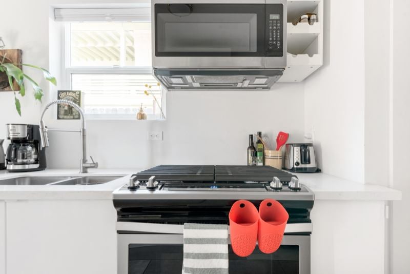 KITCHEN Spacious Fully Stocked open concept, kitchen appliances, stoveoven, refrigerator, microwave, dishwasher to whip up all your favorite meals Coffee maker, kettle, toaster Cooking basics, dishwasher & flatware, water filter