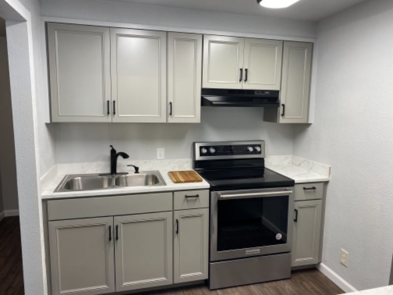Stainless steel flat top range, garbage disposal and stainless steel refrigerator. Open kitchen has table top bar and tons of cabinet space. Open stand up shower. Extra overhead storage. Large bedroom with built in bench. Includes one free assigned parking space. Trash and utilities are included in the rent. The electricity is resident(s) responsibility. Cable ready!