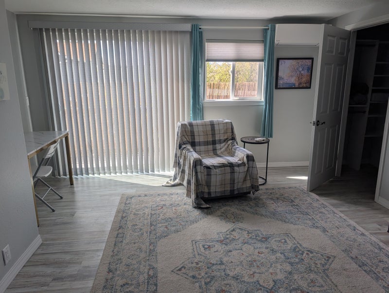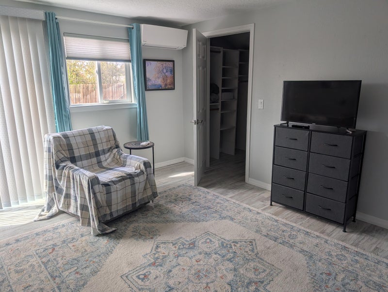 Large second story bedroom with walk-in closet, balcony and private bath. Kitchen shared with current residents. Parking is a available at on driveway at side of house. Must like cats as there are cats here too