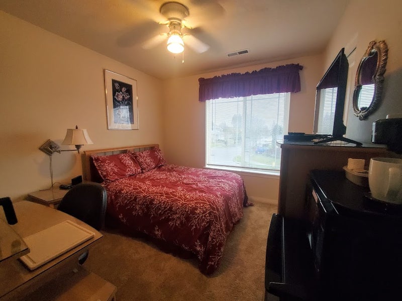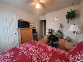 $800. Monthly Rent Includes Furnished Room, Utilities, Streaming TV, Amazon Prime and WiFi Bed with Night Stand and Lamp Chest of Draws Desk and Chair with Lamp 32" Flat Screen TV and Blue Ray DVD Personal Size 2 Door Refrigerator Freezer in Your Room Extra Shared Full Size Refrigerator Freezer in the Garage Personal Size Microwave in Your Room Air Fryer in Your Room K-Cup Coffee Maker in Your Room Alarm Clock w/USB Outlet on the Back Ceiling Fan Washer and Dryer Seasonal Deck with BBQ